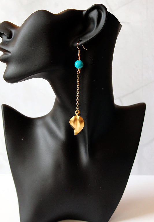 Turquoise Bead and Brass Leaf earrings